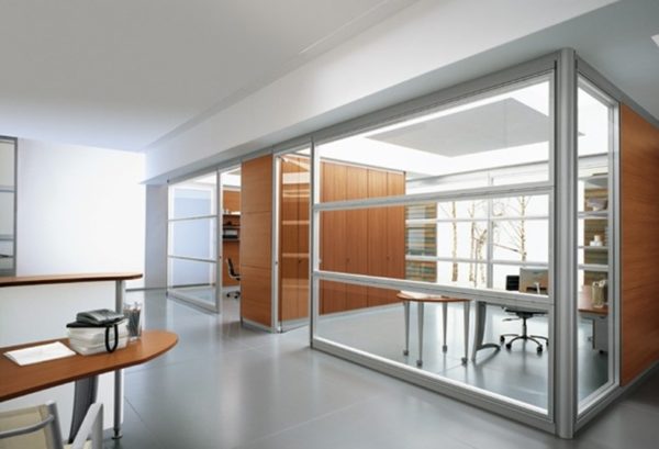 Противопожарные перегородки комбинированного типа могут изготавливаться как в полностью остекленном варианте, так и в частично остекленном исполнении. Основное предназначение таких конструкций — это разделение общего помещения на несколько отдельных рабочих зон. При этом преследуется несколько целей: